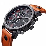 | F.IZILI Men’s 8192 Analog Quartz Orange Watch | FIZILI | Three sub-dials are not functional but decorative, buttons beside crown are not functional This watch band wearable length around the wrist (perimeter) is from 6.7 to 8.7 inches Packaged with original sturdy box, best choice for gift Japan original precise quartz movement with accuracy of no more than 1 seconds per day, no waterproof. IP Plating alloy case, PU leather watchband, solid stainless steel back cover, long-time life Japanese battery |